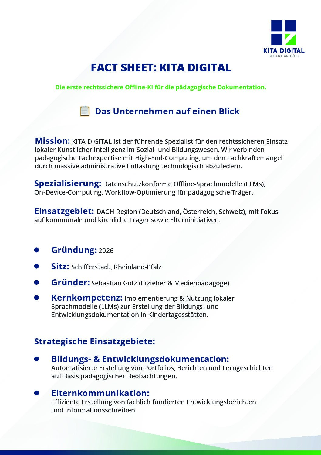 KITA DIGITAL ist kein bloßes Software-Tool – es ist ein Befreiungsschlag für den Erzieher-Alltag. Wir nutzen modernste On-Device-KI, um die Mauer zwischen Fachkraft und Kind einzureißen. Gewinnen Sie das Kostbarste zurück: Zeit für das Herz.